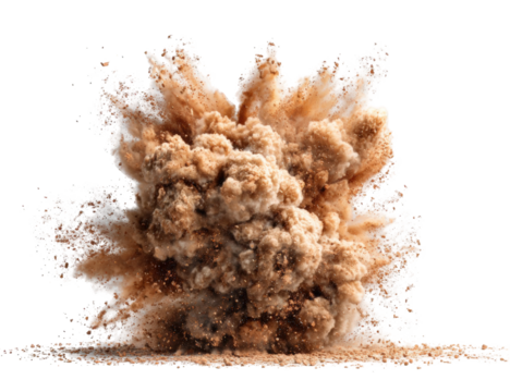 Exploding sand cloud against a black background