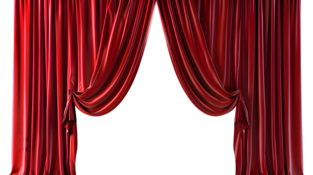 Elegant red stage curtains with classic draping style, theater interior design. Performance and drama concept
