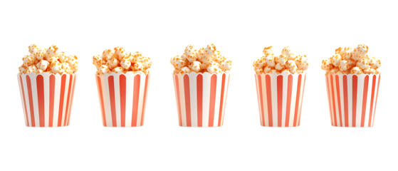 Set of Popcorn in Five Different Poses Against Transparent Background for Snack Branding, Movie Night Promotions, or Culinary Projects