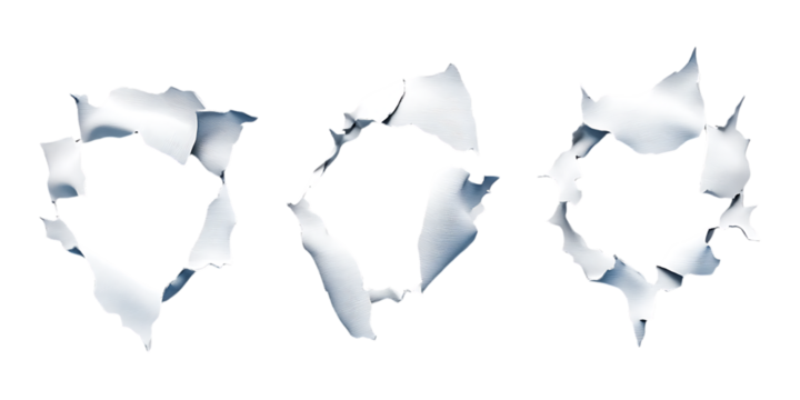 Pack Fabric Ripped Hole Set in Different Poses Against Transparent Background for Textile Design, Fashion Concepts, or Grunge Aesthetics