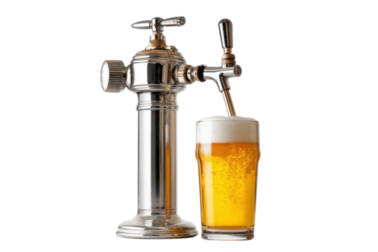 Traditional Beer Engine Tap with Pint on Transparent Background