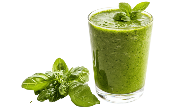 Green Smoothie Refreshment with Basil Garnish Delight