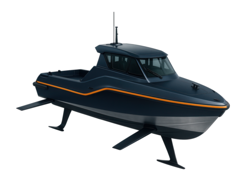 Hydrofoil patrol vessel with elevated bridge and retractable wings