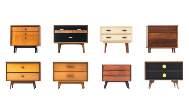 Set of various modernist luxury chest drawers isolated on white background