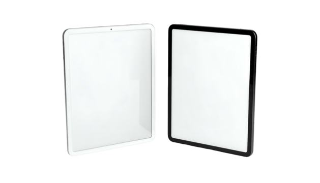 iPad on transparent background with shadow. Side view with empty blank screens for web design and UX/UI mockups.