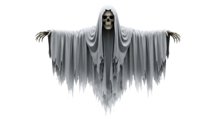 Isolated Ghostly Reaper with Rags and Skull, Spreading Its Arms – Creepy & Ominous