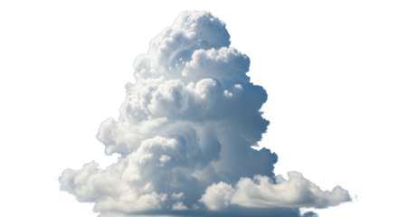 A large, fluffy cloud isolated on transparent background, showcasing its voluminous form and intricate details, perfect for adding a dramatic and serene touch to any visual composition