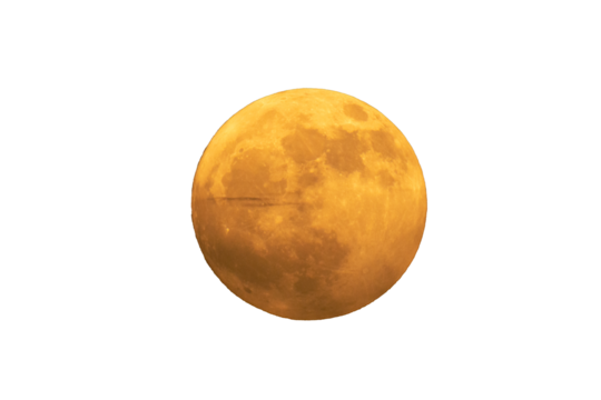 Full orange moon. Super moon photographed with a telescope, the craters of the moon can be seen