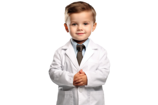 A Little boy in a doctor suit on a transparent background PNG. Children's dream career