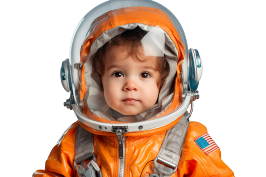A little boy in astronaut suit on transparent background PNG. Children's dream career concept