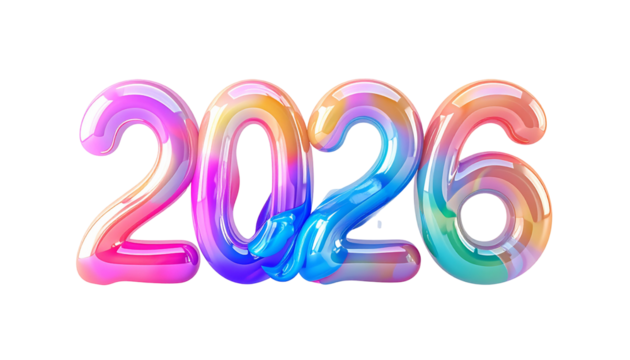Colorful, glossy, airbrushed digits forming the year 2026