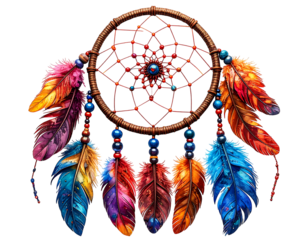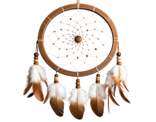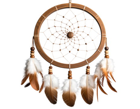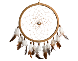 Native American dreamcatcher with feathers and beads, isolated on a transparent background
