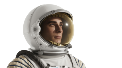 Afroamerican boy wearing a superhero cape and astronaut helmet, looking up with wonder. PNG transparent.