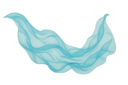 Aqua blue flowing fabric creating wavy abstract shapes moving dynamically on a transparent background