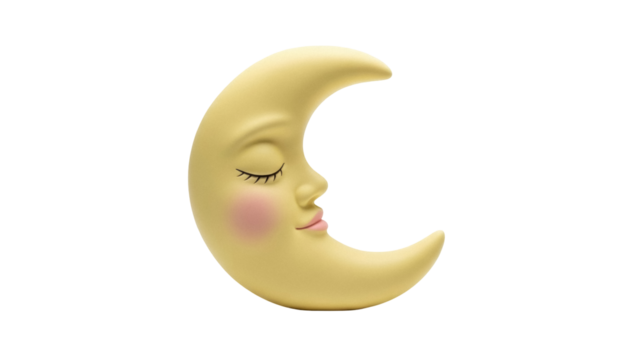 Dreamy celestial crescent moon face illustration on transparent background