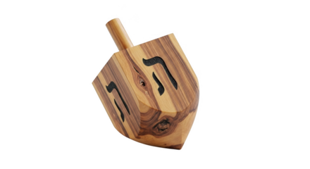 Wooden dreidel with Hebrew letters on a png isolated transparent background black background game