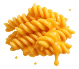 Spiral pasta drenched in creamy cheddar cheese sauce.