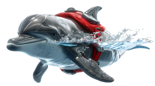 Dolphin dressed as a life guard isolated on a transparent background, PNG, Ai
