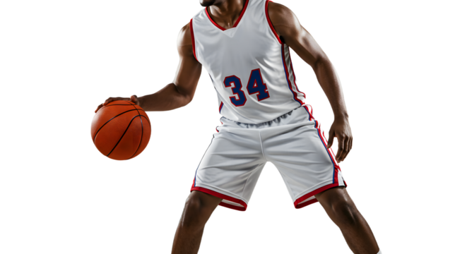 Basketball player in action dribbling ball isolated on transparent background