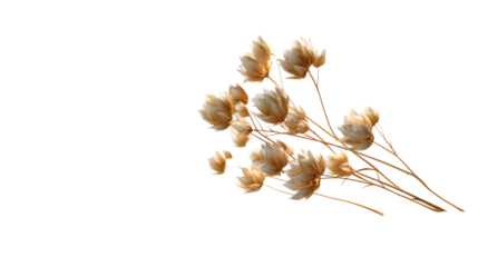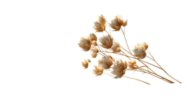 Two dried poppy seed pods isolated on transparent background, close up shot