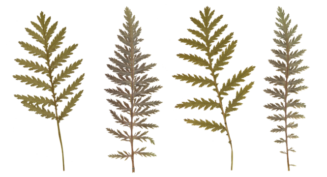 Set of Exquisite Fern Leaves - High-Quality Botanical Scans with Transparent Background. Pressed Dried Leaves collection