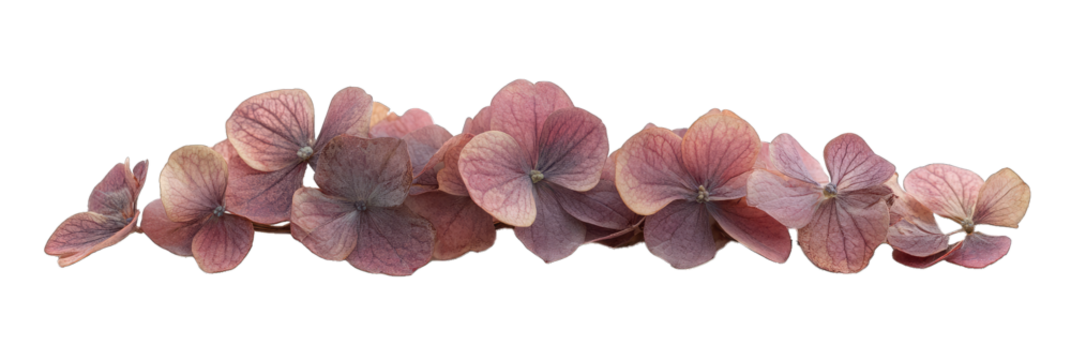 Dry pink hydrangea flowers isolated on a transparent background; PNG
