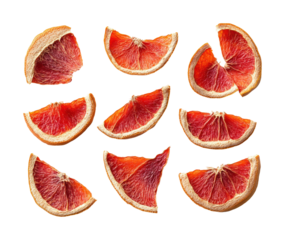 Set of dried citrus fruits isolated on a transparent background, top view.