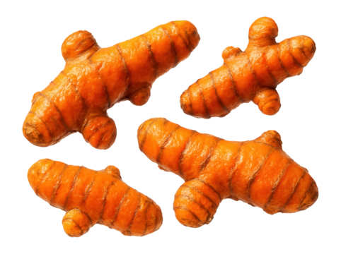 Whole turmeric root pieces with a rough, orange exterior
