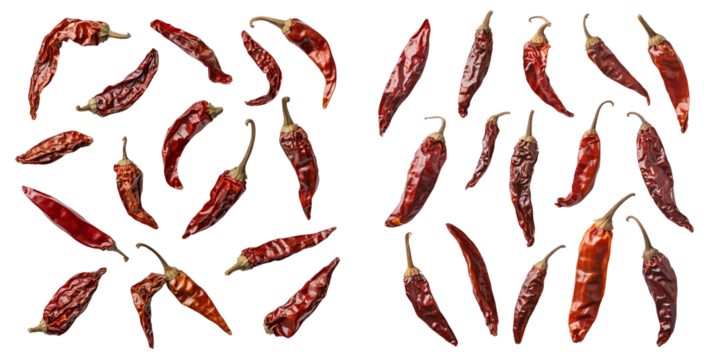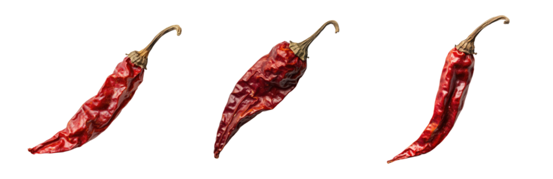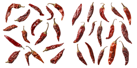 set of dried red chili peppers on a transparent background