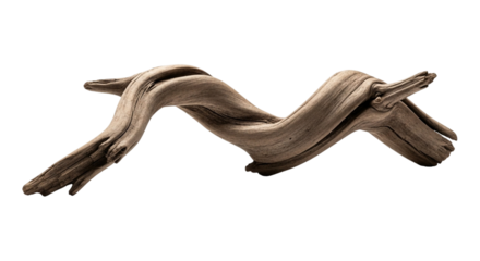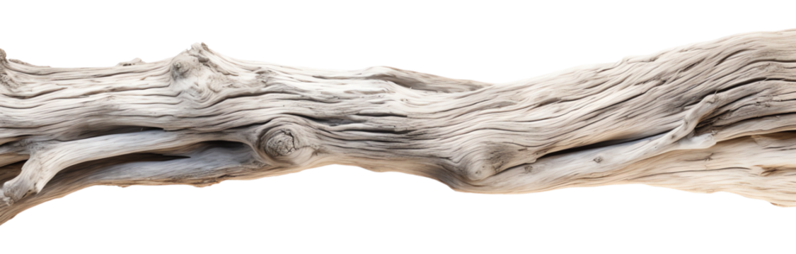 Isolated driftwood piece with unique texture and organic formations isolated on transparent background