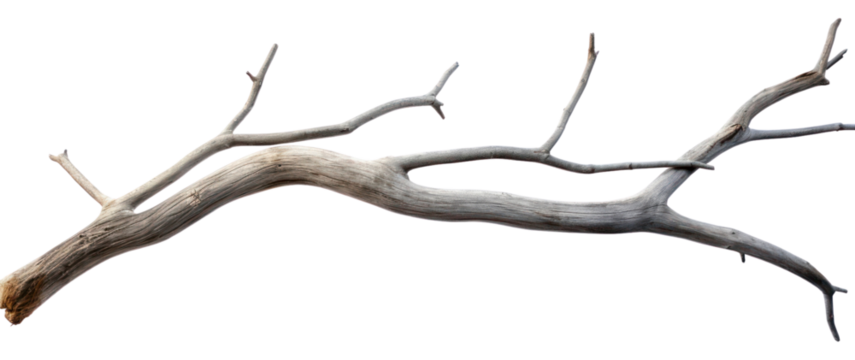 A natural piece of driftwood with organic curves and textured grain, isolated on a transparent background