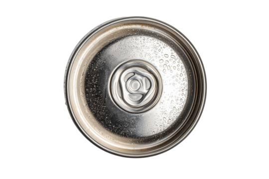 Close up of a condensation covered aluminum can top showing intricate details and texture