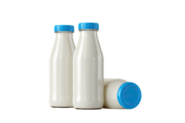 Collection of white gable top cartons with screw caps isolated on a transparent background milk juice