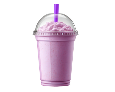 Refreshing taro bubble tea clipart, trendy cold drink element perfect for summer. Sweet purple beverage in plastic cup with dome lid providing delicious, cool treat