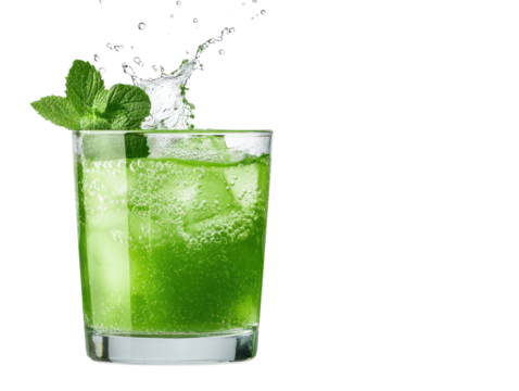 Refreshing mint drink splashing in glass cutout background vibrant beverage scene indoor setting