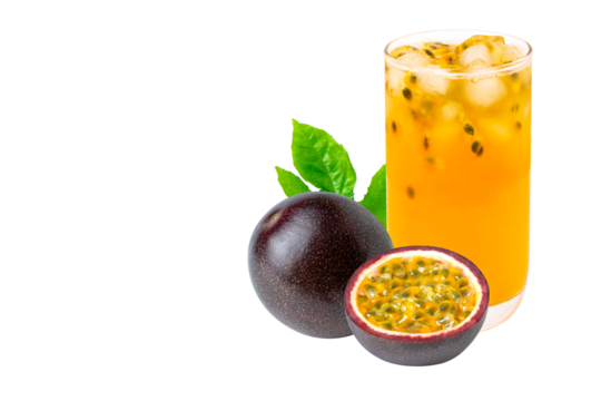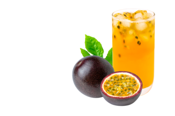 Passion fruit Juice isolated white background.
