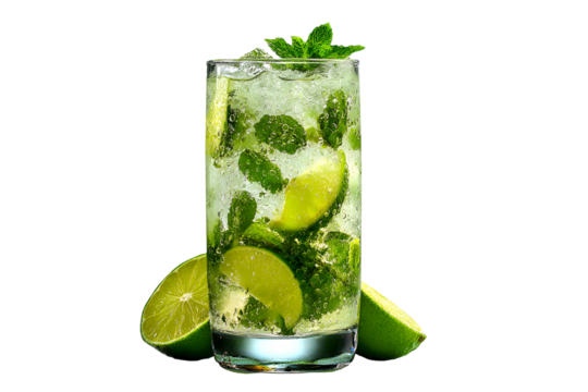 Refreshing mojito cocktail with lime and mint isolated on transparent background