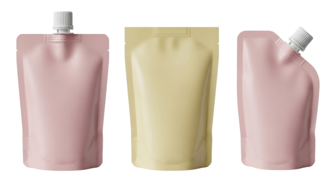 Set of Blank Pink and Yellow Stand-Up Spouted Pouch Mockups Isolated on White