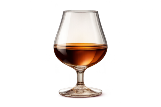 Brandy or Cognac in Glass with transparent background, drink close-up