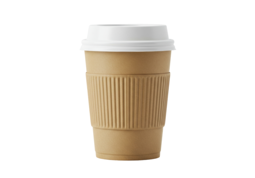 Blank Kraft Paper Takeaway Coffee Cup with White Lid, Isolated PNG on Transparent Background