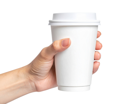 Hand Holding Disposable Coffee Cup with Sleeve paper