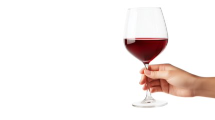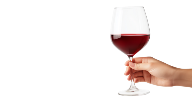 Hand holding glass of red wine isolated on transparent background