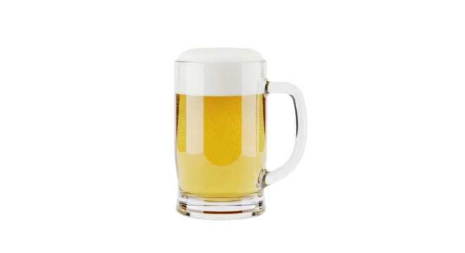 Isolated glass mug of foamy, refreshing beer for a thirsty beer drinker or reveler at Oktoberfest