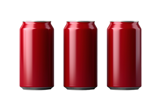 Soda and Beer Aluminum Cans in Small, Medium, and Large Sizes, Perfectly Aligned on a Crisp White Background or transparent background for Branding Purposes