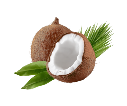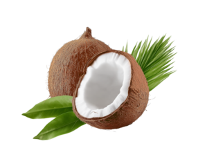 Fresh Coconut slice with open isolated transparent background Ai generative.