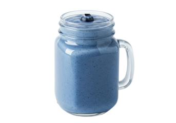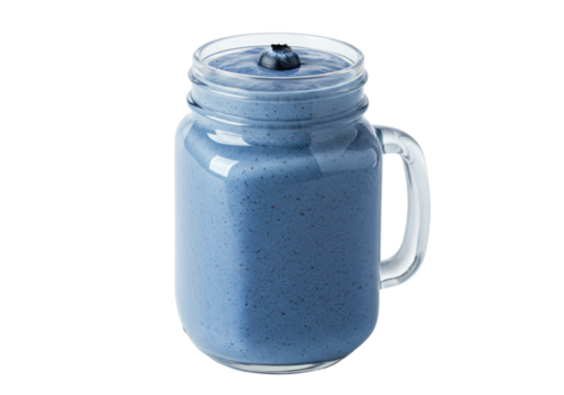 Isolated blue smoothie in a mason jar with a handle and blueberry on top, refreshment
