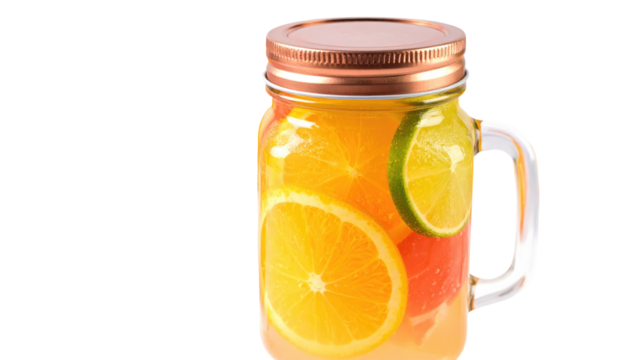 Orange juice in a mason jar isolated PNG, refreshing drink on transparent background for healthy lifestyle and summer vibes