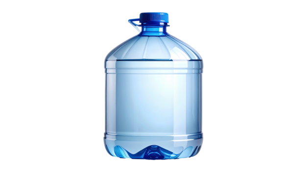 A modern desk setup featuring a grey spiral notebook, a white computer mouse, a black water bottle, and two green potted plants isolated on transparent background