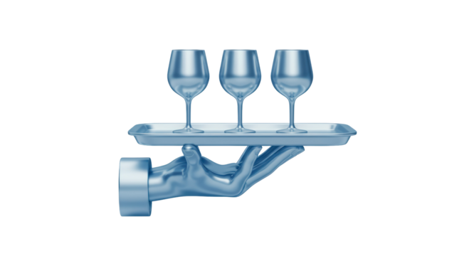 Isolated Polished Silver Tray Conveying Three Flawless Glasses, Symbolizing Superb Service and Generous Hospitality