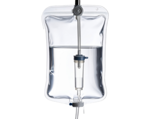 Hanging Intravenous Therapy Bag with Drip Set, Isolated PNG